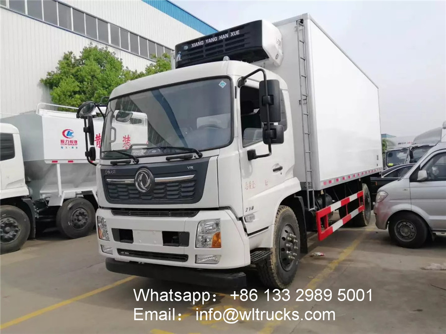 Tianjin 15 ton Meat Hook Freezer truck Vehicle Model: DFH5180XLCBX1DV Vehicle size: 9000*2600*3920mm Box size: 6550*2440*2400mm Kangji 190 horsepower engine.
