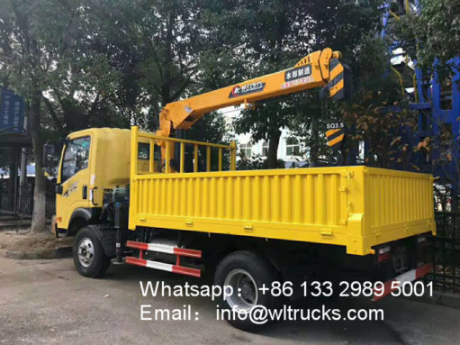 | Crane description: | The Tengyu 2 ton truck-mounted crane has a maximum lifting capacity of 2 tons, a maximum working radius of 5.5 meters, and a maximum lifting height of 7.5 meters. It is fully hydraulic and fully slewing. |